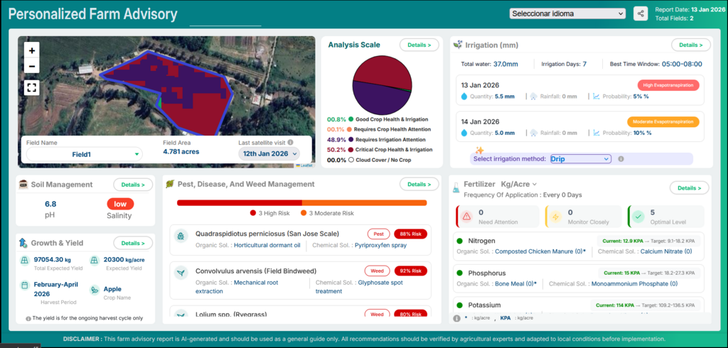 Empoderando a los agricultores, agrónomos y empresas agricolas con un sistema de asesoramiento agrícola basado en satélites e inteligencia artificial.